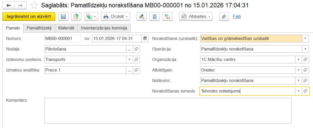 Списание и частичная ликвидация. Для корректного учета предусмотрены два сценария: