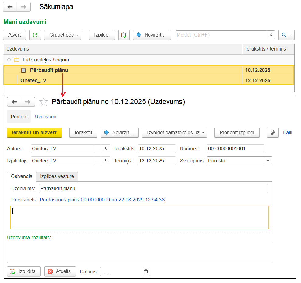 Самый простой способ организовать процесс планирования — использовать задачи. Задачу можно создать на основании плана. В задаче указывается, что нужно сделать, сроки, ответственные лица, кто и когда должен это проверить. После этого задача появляется на рабочем столе исполнителя.