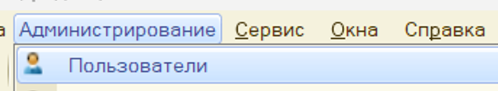 Далее выбираем пункт меню «Администрирование» --- «Пользователи»